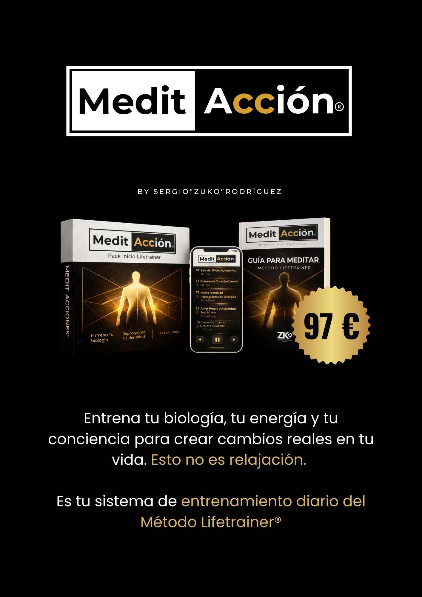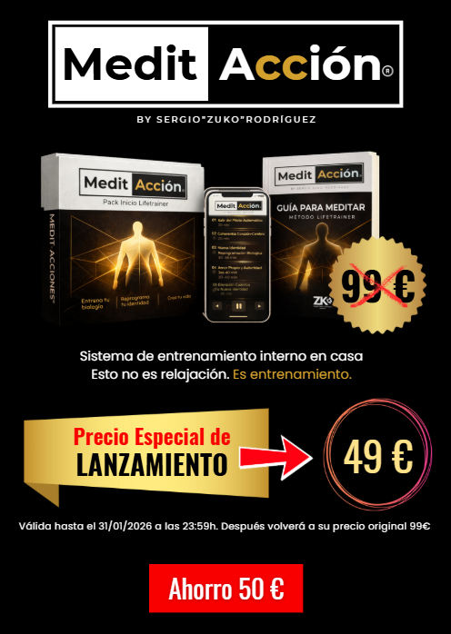 Incluye una guía práctica para meditar con el método LIFETRAINER, para que aprendas paso a paso cómo meditar y, sobre todo, cómo usar cada MeditAcción de forma correcta según tu momento y tu objetivo. La tendrás en dos formatos: un PDF claro y directo para seguirlo a tu ritmo, y la versión en audio para acompañarte y entrenar incluso cuando no puedas leer.